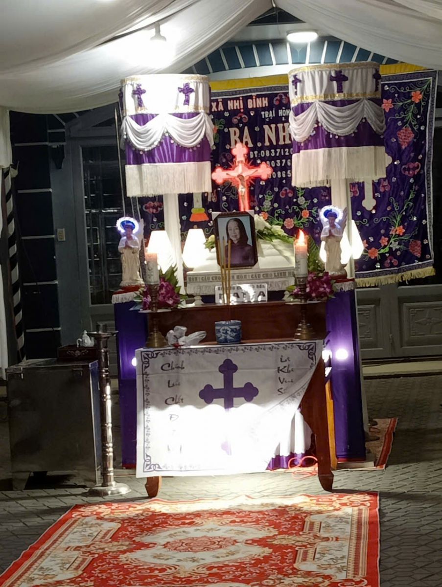 Hình: Đưa Hài Cốt Bà Matta vào nhà Chờ Phục Sinh Gx.Tân Đông.